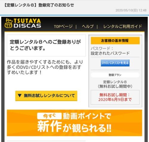 以上がTSUTAYA DISCAS/TSUTAYA TVの登録方法でした!