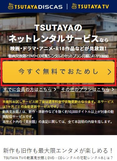 以下のリンクよりTSUTAYA DISCAS/TSUTAYA TVのトップページに行きます。