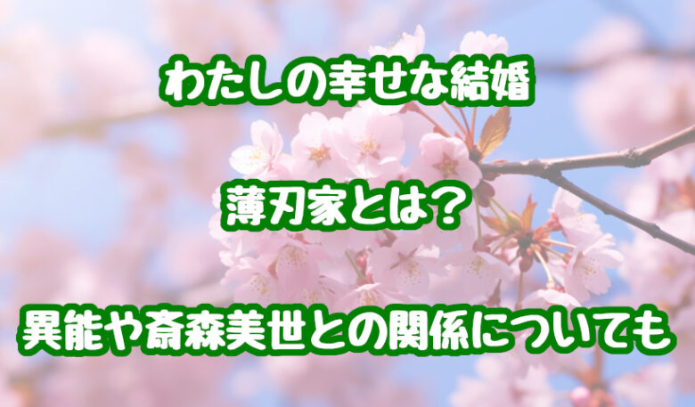 わたしの幸せな結婚/薄刃家とは?異能や斎森美世との関係についても