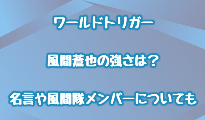 「ワールドトリガー」に登場する風間蒼也についてまとめました。